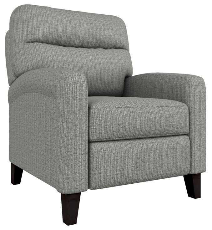 The back cushion features ample amounts of cushioning pillow fibers, and for your convenience, zipper access in the top back allows for repositioning, and the adding or subtraction of fibers to customize your comfort. The tapered wood legs come in your choice of three different finish options: Espresso, Dark Walnut and Riverloom. The Wynne recliner is the perfect finishing touch for your room, and everyone’s new favorite seat.