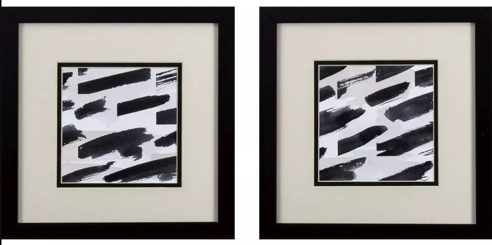 A set of two neutral abstract prints that are double matted framed under glass and paired with a sleek black frame. Add style to your home and elevate your wall with this eye-catching piece of decor.Read More