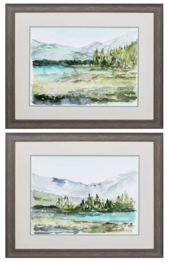 A set of water-colored landscape images that have been double-matted and framed under glass with wood-toned moulding. This art set will make a statement and serve as an eye-catching piece in your home.Read More