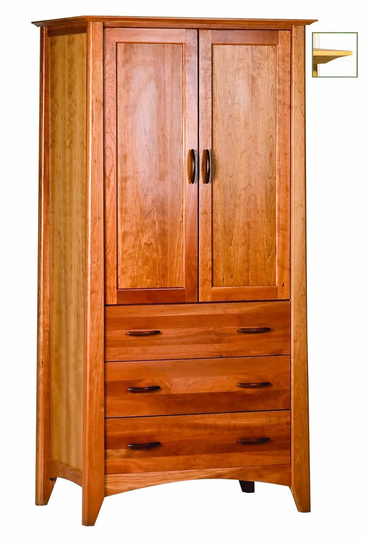 Cherry Armoire with two adjustable shelves and closet pole. Accommodates most 27” TVs. made in Foxborough, MA.Read More