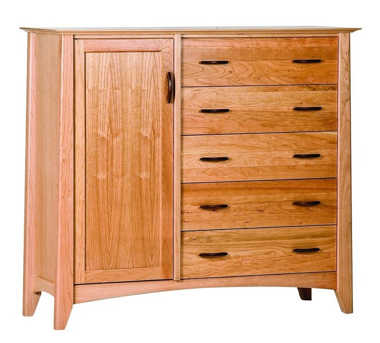 Cherry gent's chest with 2 adjustable shelves and 5 drawers. Made in Foxborough, MA.Read More